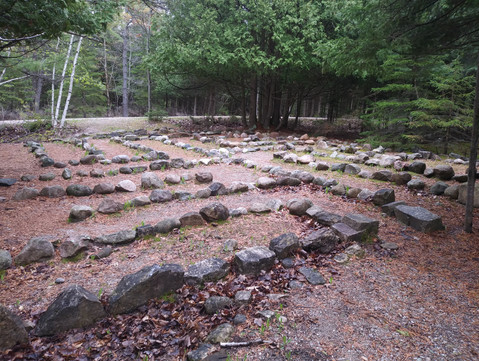 After a good night's sleep, we were ready to explore the island. After a light breakfast, we went to grab a hot chocolate and a box of chocolates at Manitoulin Chocolate Works, then we stopped by "The Sailors' Church", an Anglican church with lots of nautical furnishings and a great history. Although small (and easy to miss on the road!), it was a nice little visit. We also wanted to take a look at the museum, but it was closed, so we decided to take the trail up to see Bridal Veil Falls (I know, same name as in Niagara Falls). On the way, there was a rock maze where we raced for fun, too!