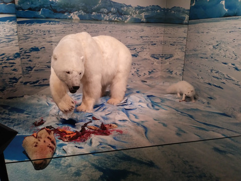 Our second stop was the NWT Legislative Assembly, where we took a free tour (with a surprisingly large group). The NWT is one of only two jurisdictions in Canada to have a consensus system of government, meaning there are no political parties, just independents! You can't see it clearly in the first picture, but the outside of the building was inspired by the igloos, and every aspect of it was purposefully put there to remind the members of the different people they represent, and to show everything the North has to offer. The picture with the bear pelt shows the inside of the Assembly, and the one next to it, the outside: it has glass panels so that anyone can see what's happening in there. You can also see the mace (it has a diamond on the tip!) and a beautiful painting in the caucus room. I really recommend taking a free tour if you go, there was so much to learn!